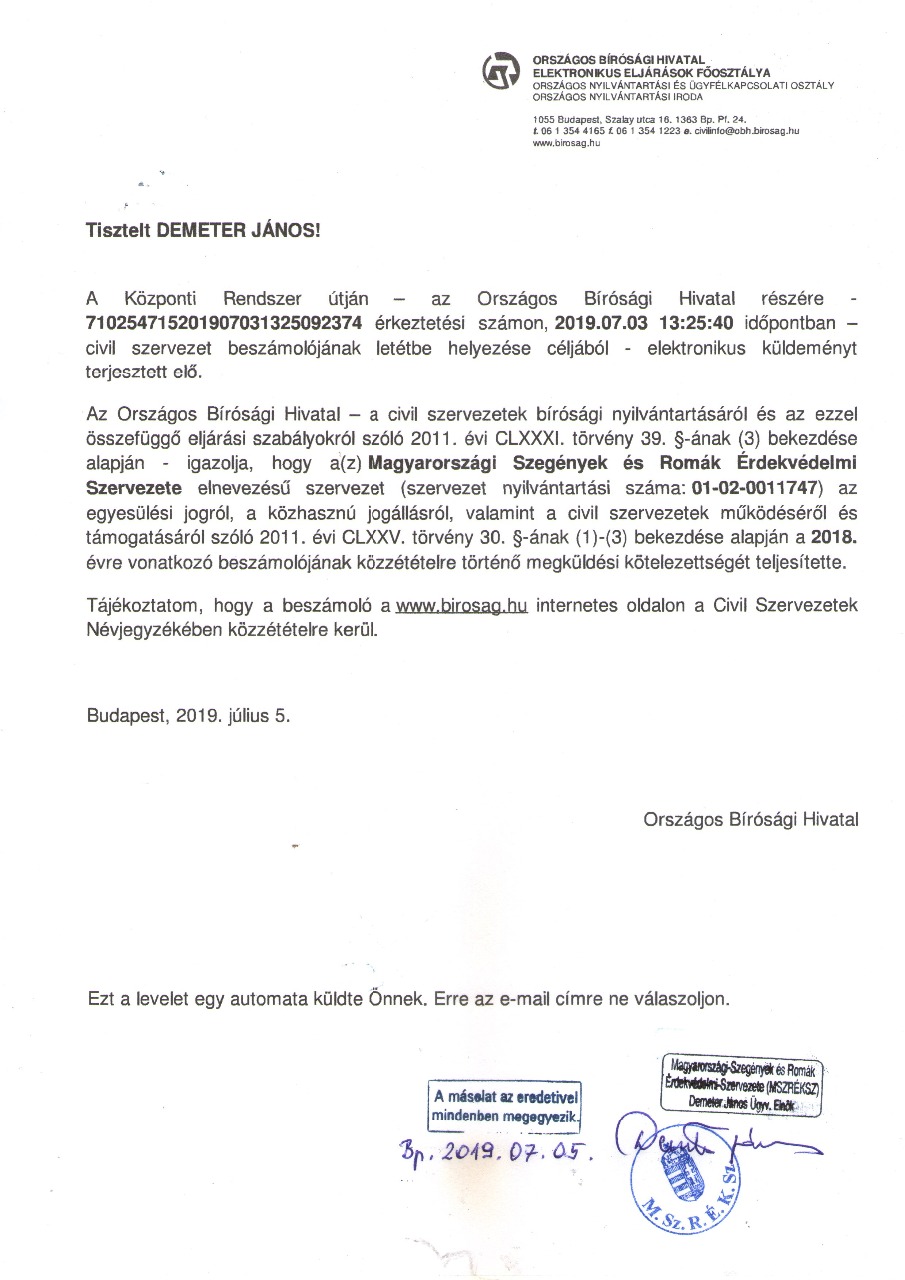 2018 évi mérleg - beszámoló igazolása