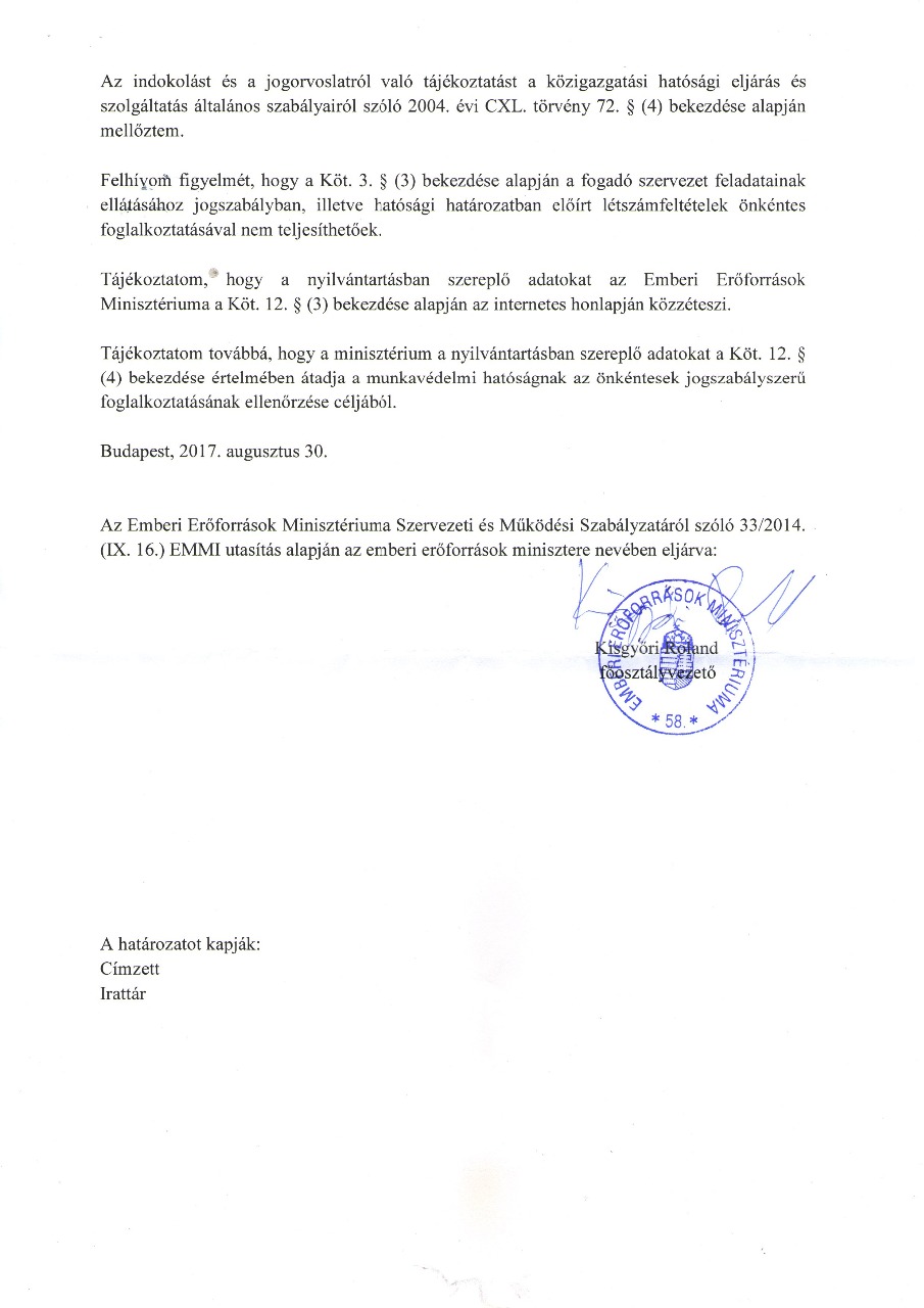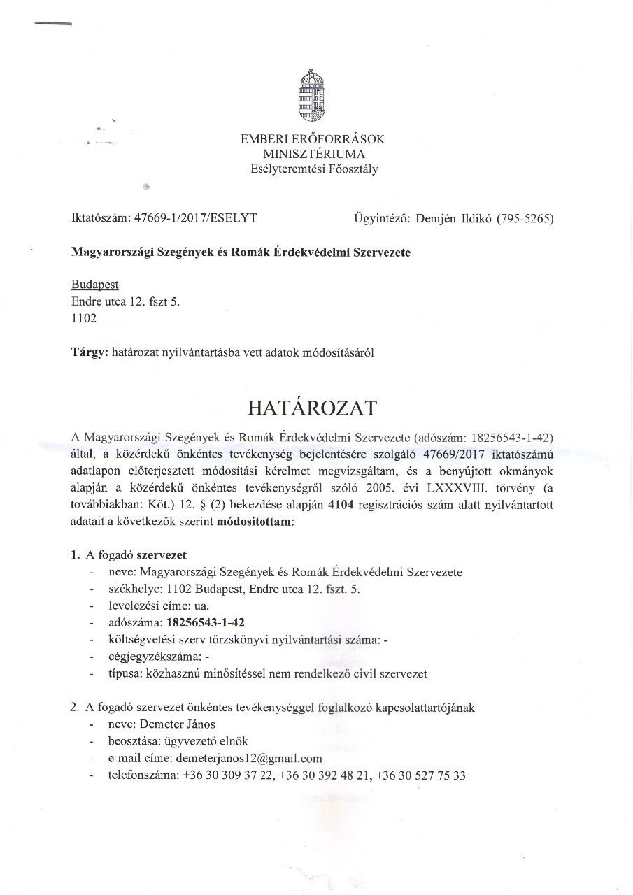 Határozat nyilvántartásba vett adatok módosításáról